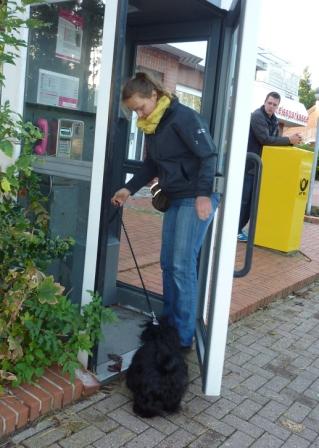 Einkaufssituationen standen diesmal auf dem Programm. Die Hunde verhielten sich allesamt prima und kamen mit den Anforderungen gut zurecht. Und letztlich hatten Hund und Mensch viel Spass dabei. Diese Ausbildungsinhalte finden sich auch in der praktischen Prüfung der Hundehalter nach dem Niedersächsischen Hundegesetz. |